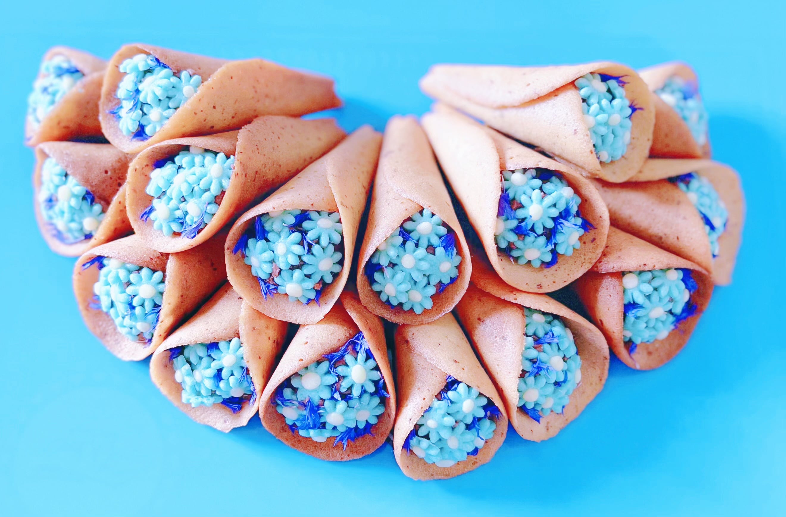 ※こちらの商品は宅急便コンパクトサイズ以上でないと配送できないため、送料が650円〜となります。 ------------------------------------------------------------- ジャンドゥージャとはチョコレートとアーモンドペーストを混ぜたクリームのこと。 当店では1からジャンドゥージャを手作りしております。 青い花束の中身には、ココナッツ入りの自家製ジャンドゥージャにカシスの酸味をプラスしていて少し大人の甘酸っぱさが感じられます。 外側はラングドシャ、飾りは青いお花クッキーと青いドライエディブルフラワー(天然食用花)を使用しています。 ▪︎配送について ☆当店の他商品と複数お買い上げいただいても同梱いたしますので、お届け先が1箇所の場合送料は1回のみとなります。 ☆合わせ買い時の配送料については、上の【配送料を確認する】をご確認くださいませ。 ☆当店での送料とは、箱代や包材費を含んだ料金です。 配送料のみではございませんのでご理解ください。 原材料: 砂糖、アーモンド、チョコレート(クーベルチュール)、薄力粉、卵、無塩バター、ココナッツファイン、カカオバター、エディブルフラワー、アーモンドパウダー、カシスピューレ、塩、リナブルー(天然色素)