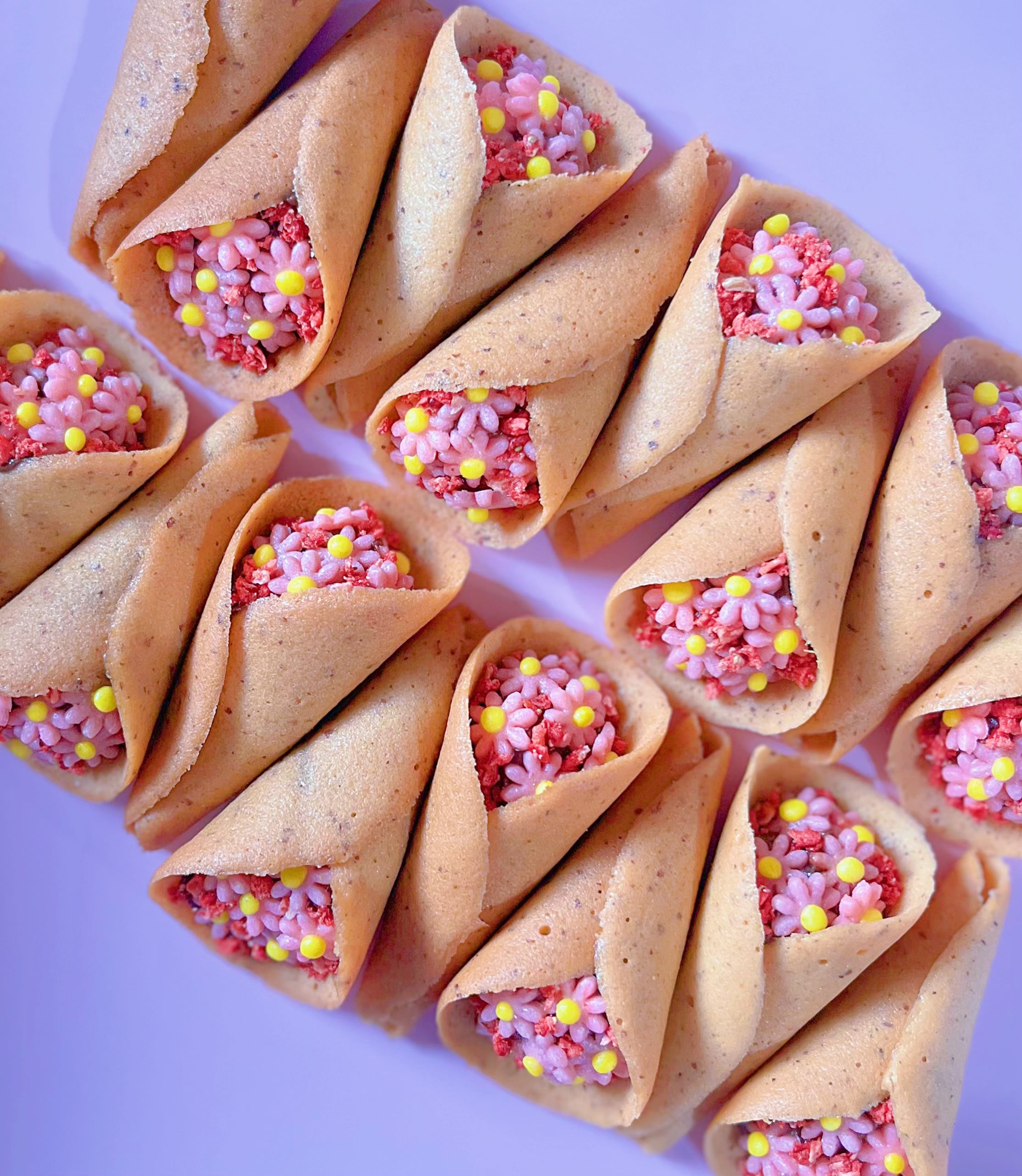 ※こちらの商品は宅急便コンパクトサイズ以上でないと配送できないため、送料が650円〜となります。 ------------------------------------------------------------- ジャンドゥージャとはチョコレートとアーモンドペーストを混ぜたクリームのこと。 当店では1からジャンドゥージャを手作りしております。 黄色花束の中身には、パッション味の甘酸っぱい自家製ジャンドゥージャを使用しています。 外側はラングドシャ、飾りは黄色いお花クッキーとドライパインとアーモンドダイスで飾っています。 ▪︎配送について ☆当店の他商品と複数お買い上げいただいても同梱いたしますので、お届け先が1箇所の場合送料は1回のみとなります。 ☆合わせ買い時の配送料については、上の【配送料を確認する】をご確認くださいませ。 ☆当店での送料とは、箱代や包材費を含んだ料金です。 配送料のみではございませんのでご理解ください。 原材料: 砂糖、アーモンド、チョコレート(クーベルチュール)、薄力粉、卵、無塩バター、カカオバター、ドライパイン、アーモンドパウダー、パッションピューレ、かぼちゃパウダー、塩、にんじんパウダー