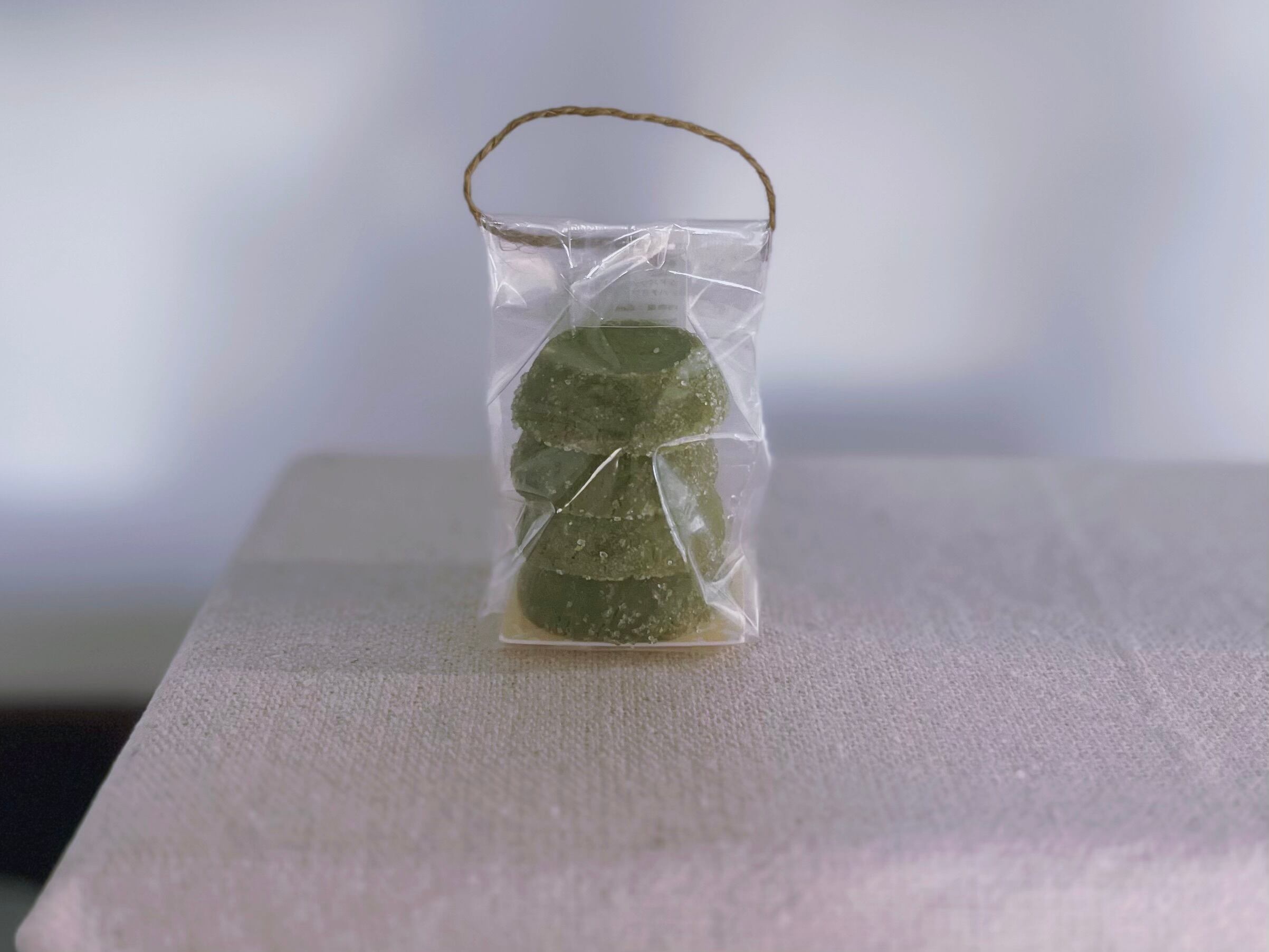 サクサクの桑茶クッキーにグラニュー糖の甘みがいいアクセントになっていて、決して甘すぎない上品な味わいです。